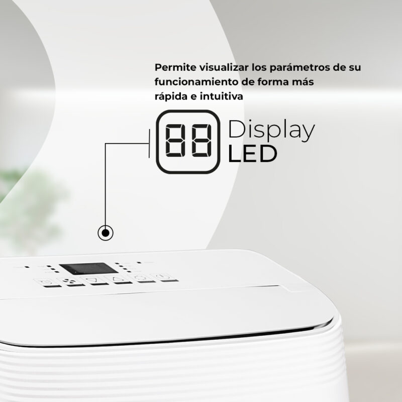 Estética blanca con panel de control electrónico con Display LED y mando a distancia. Ofrece funciones de temporizador y otras con las que obtener el mayor rendimiento y confort en tu hogar.