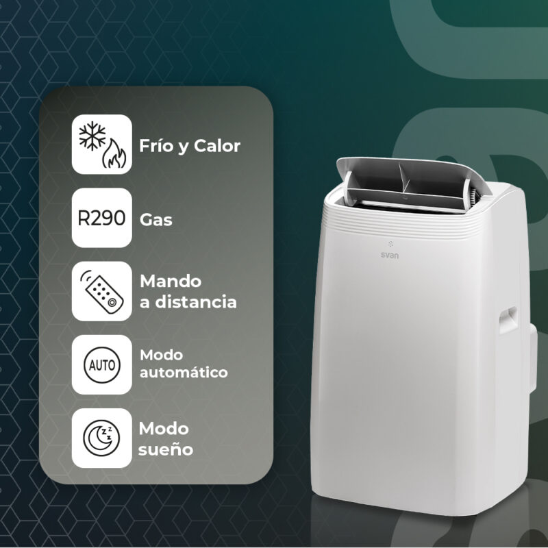 AACC Svan Portátil Frío+Calor 12000BTU A/A+ Blanco Display Mando R290 Modo Auto