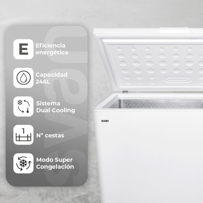 Congelador horizontal de Svan modelo SCH2501EDC.