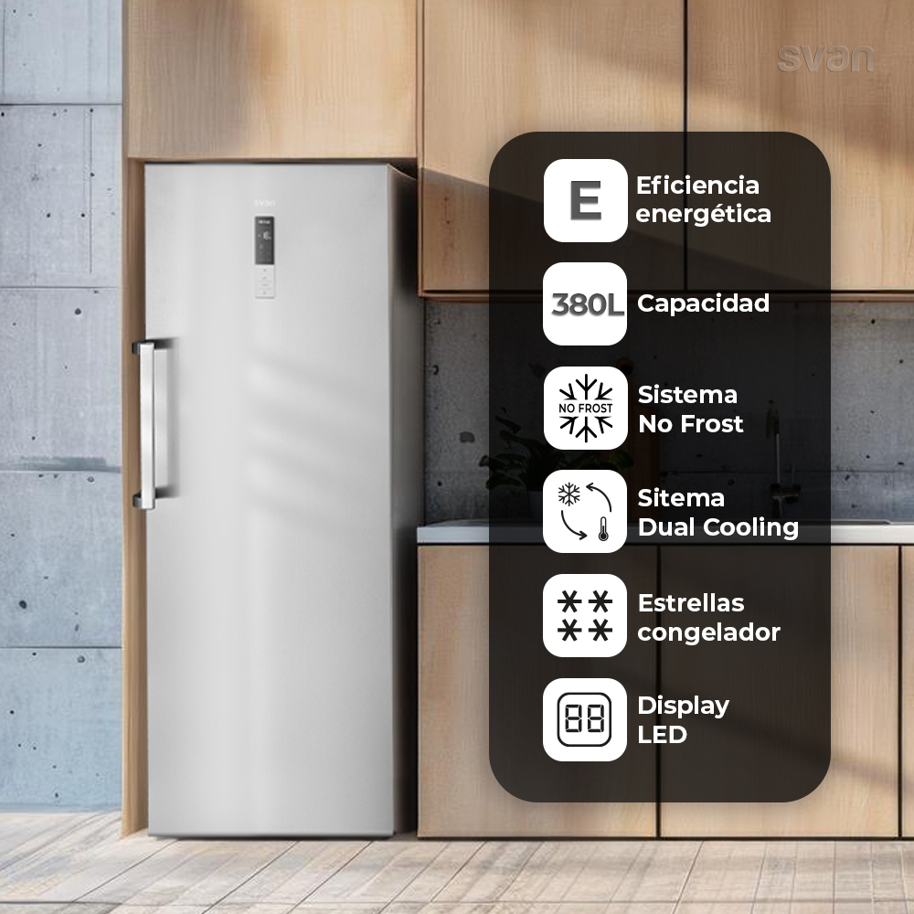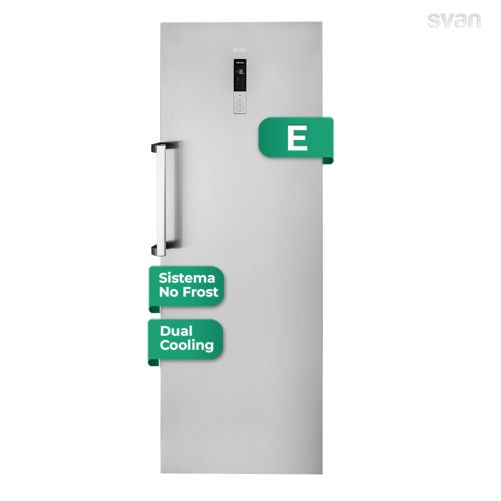 Congelador vertical Svan Dual Cooling 380L A++ 185cm 70cm 77cm Inox Display táctil