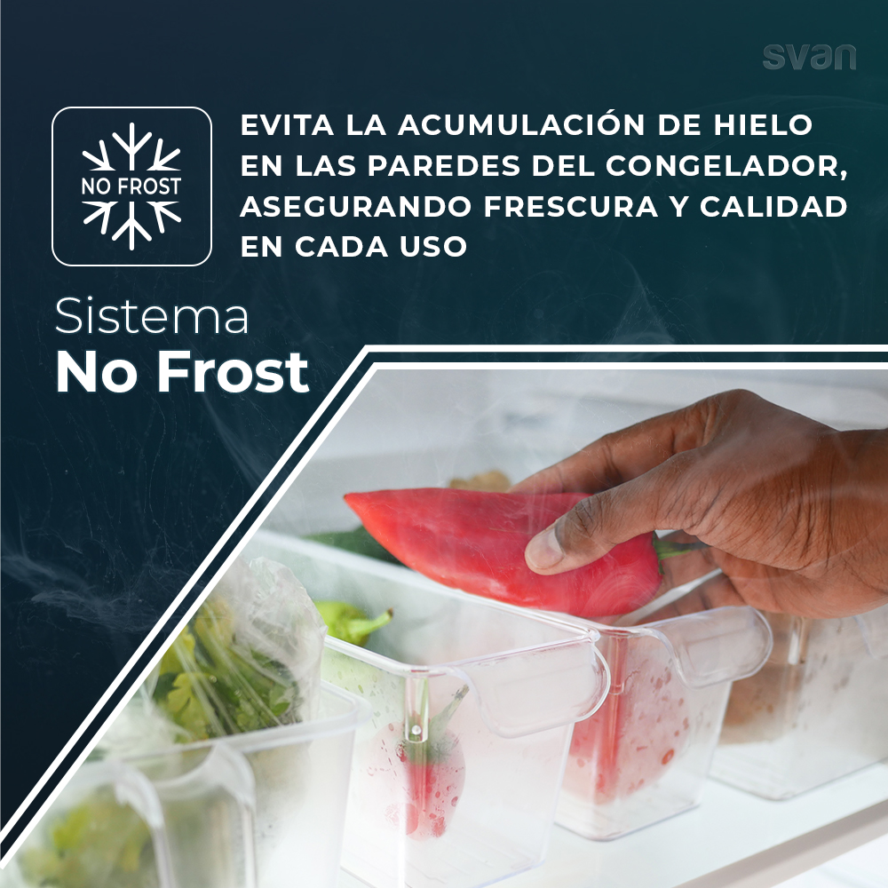 – La tecnología No Frost garantiza una óptima conservación de los alimentos y evita la formación de hielo y escarcha en el congelador.