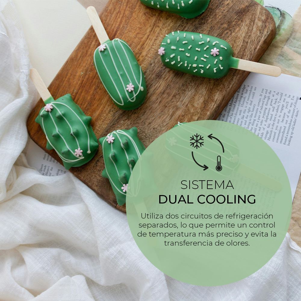 - Le système Double refroidissement vous permet de régler la température intérieure pour qu'elle fonctionne comme un congélateur ou un réfrigérateur, selon vos besoins, offrant ainsi une plus grande polyvalence à l'appareil.