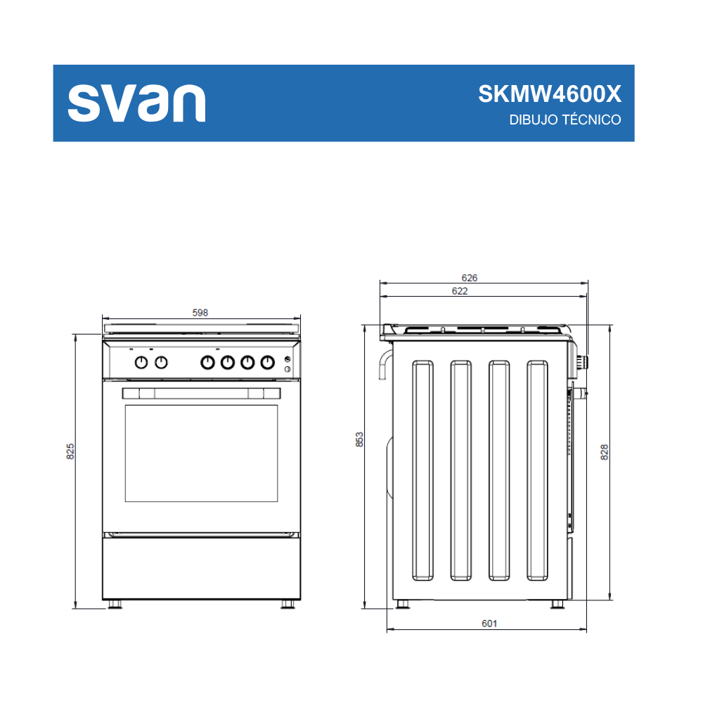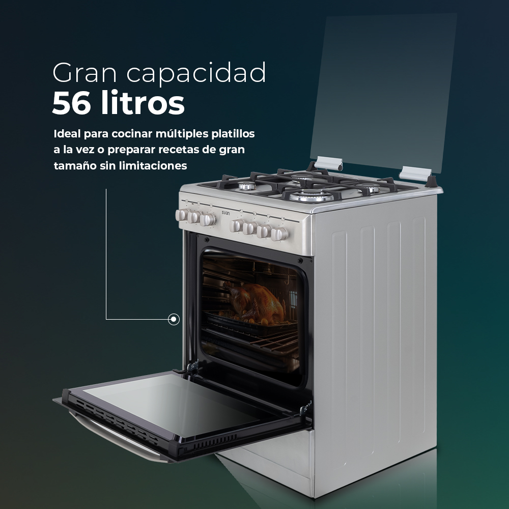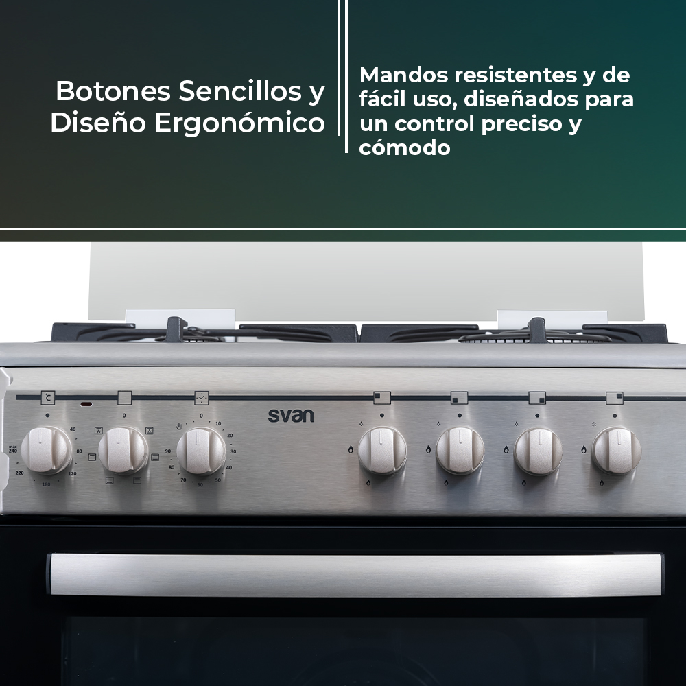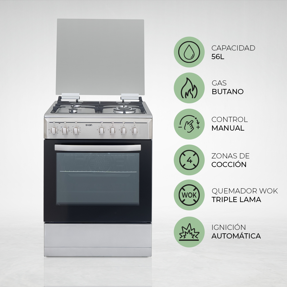 Svan Mixta 83cm 59,8cm 61cm Inox En.Inox Manual 4Q Wok 56L 6P KitGas KitGas T.Cristal Rustipollo