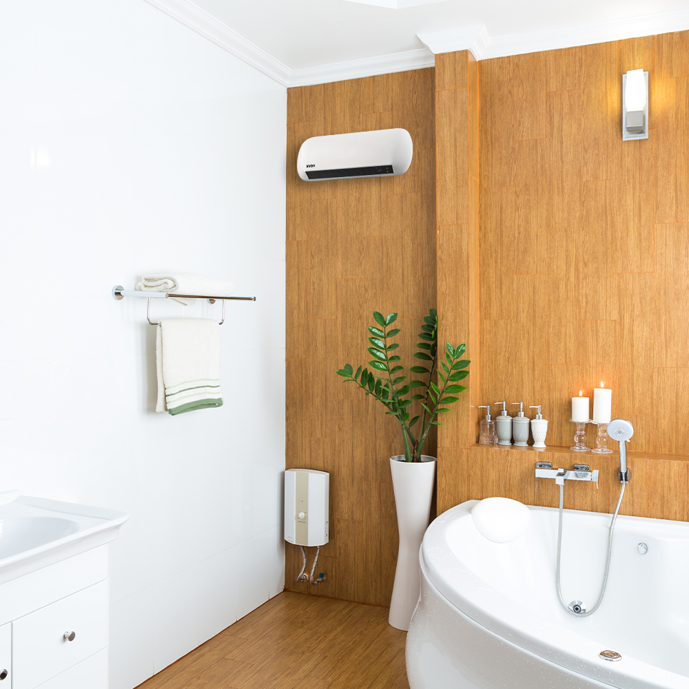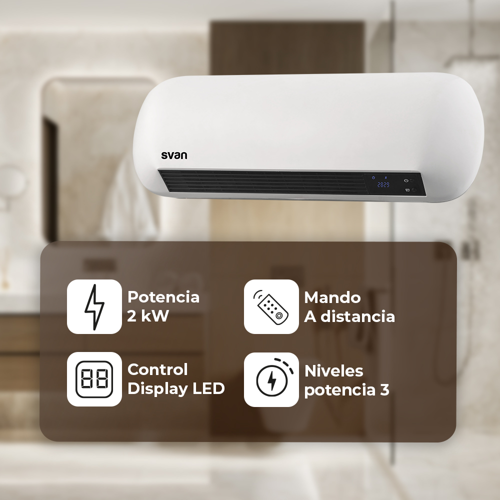 Cuisinière PTC d'une puissance de 2000 W. Comprend un kit de fixation pour le montage mural.