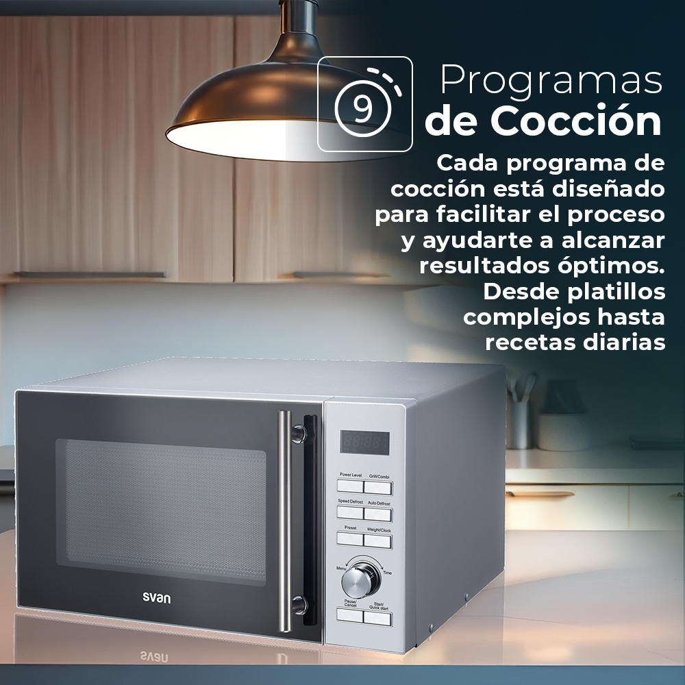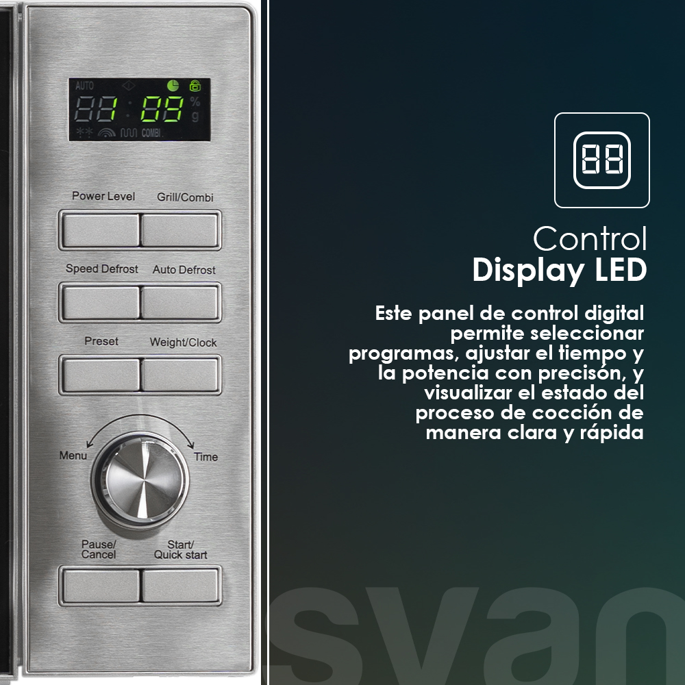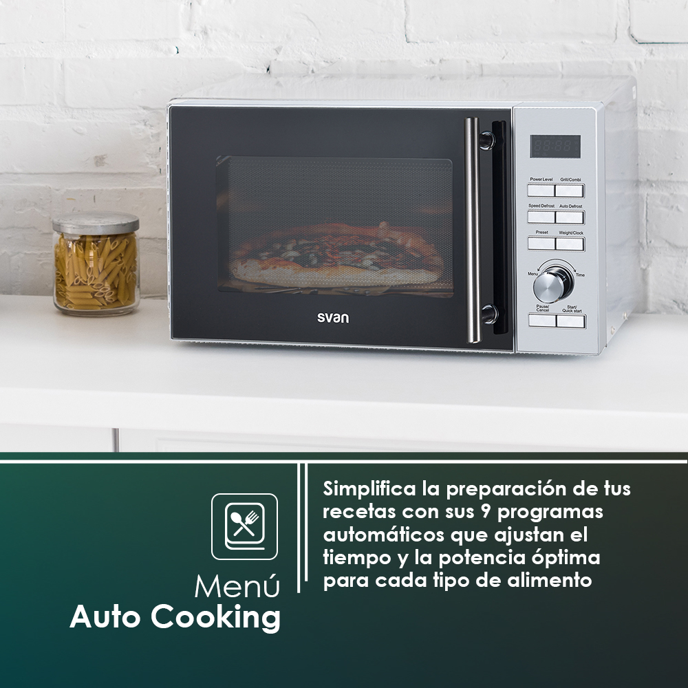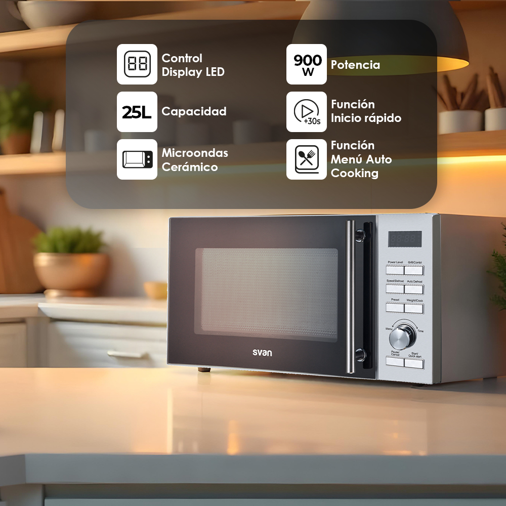Micro-ondes céramique Svan 25L 900W 28,8cm 49cm 41cm Inox Display Auto Cooking