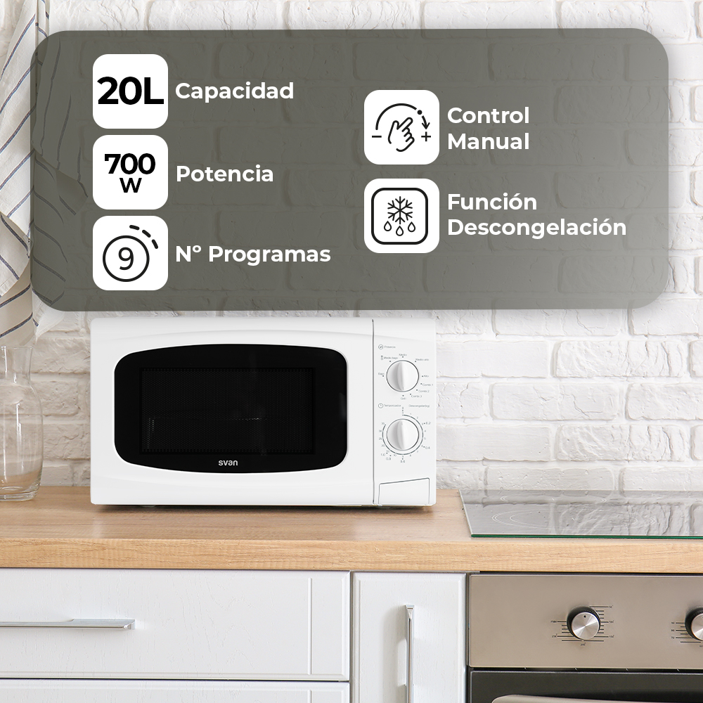 Micro-ondes Grill Svan 20L 700W 25,9cm 43,2cm 34,2cm Manuel Blanc