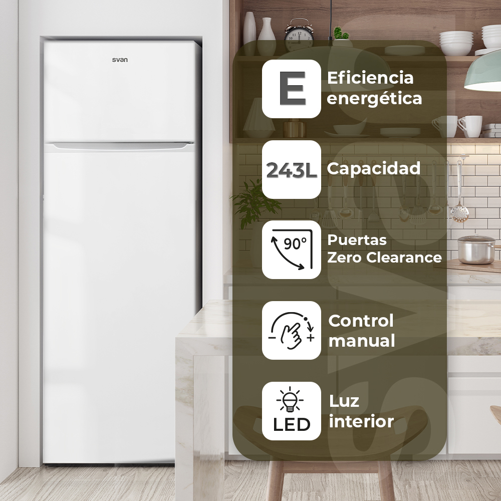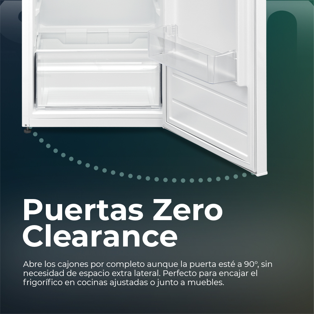 Esthétique blanche avec 2 portes réversibles avec ouverture de type rainure et système Zero Clearance 90º. Eclairage intérieur par LED. Système de contrôle manuel, dégivrage manuel et fonctions pour tirer le meilleur parti du réfrigérateur.