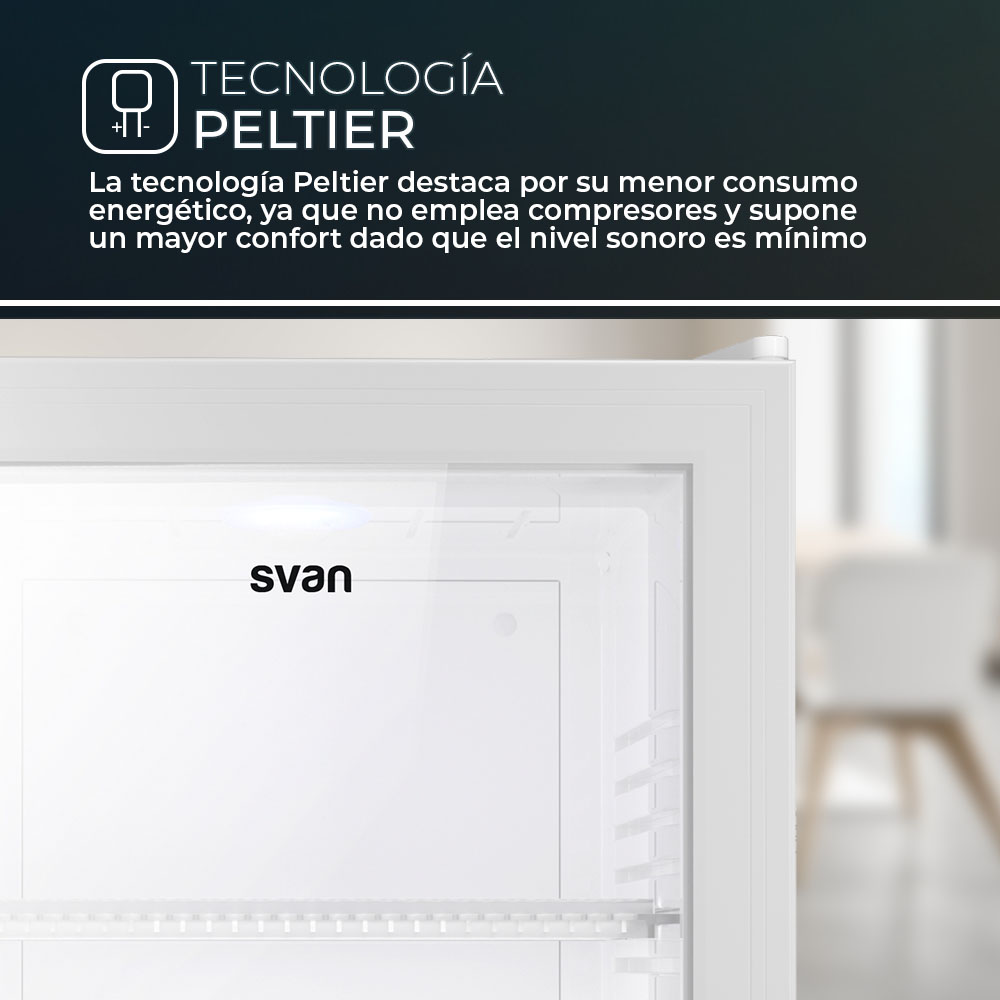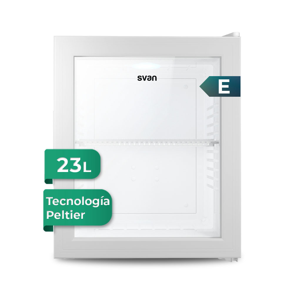Refroidisseur à technologie Pelier. Efficacité énergétique E et niveau sonore maximal de 23 dB.