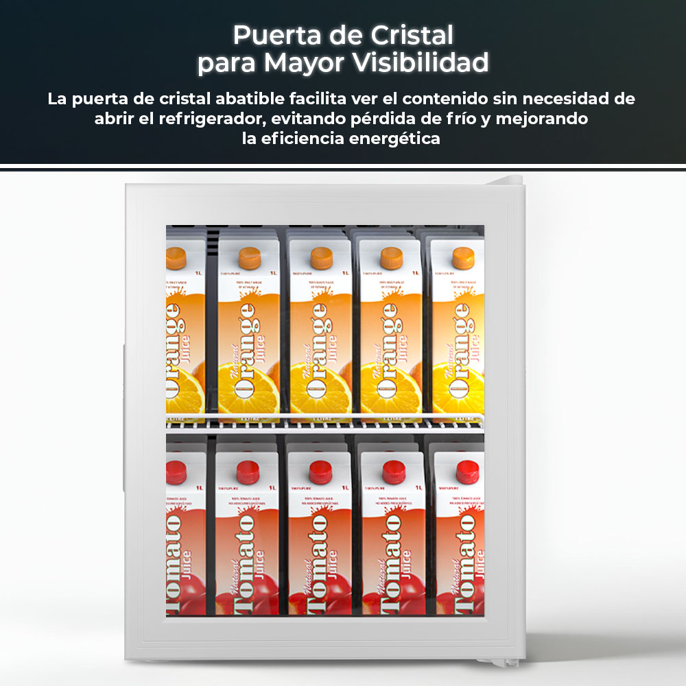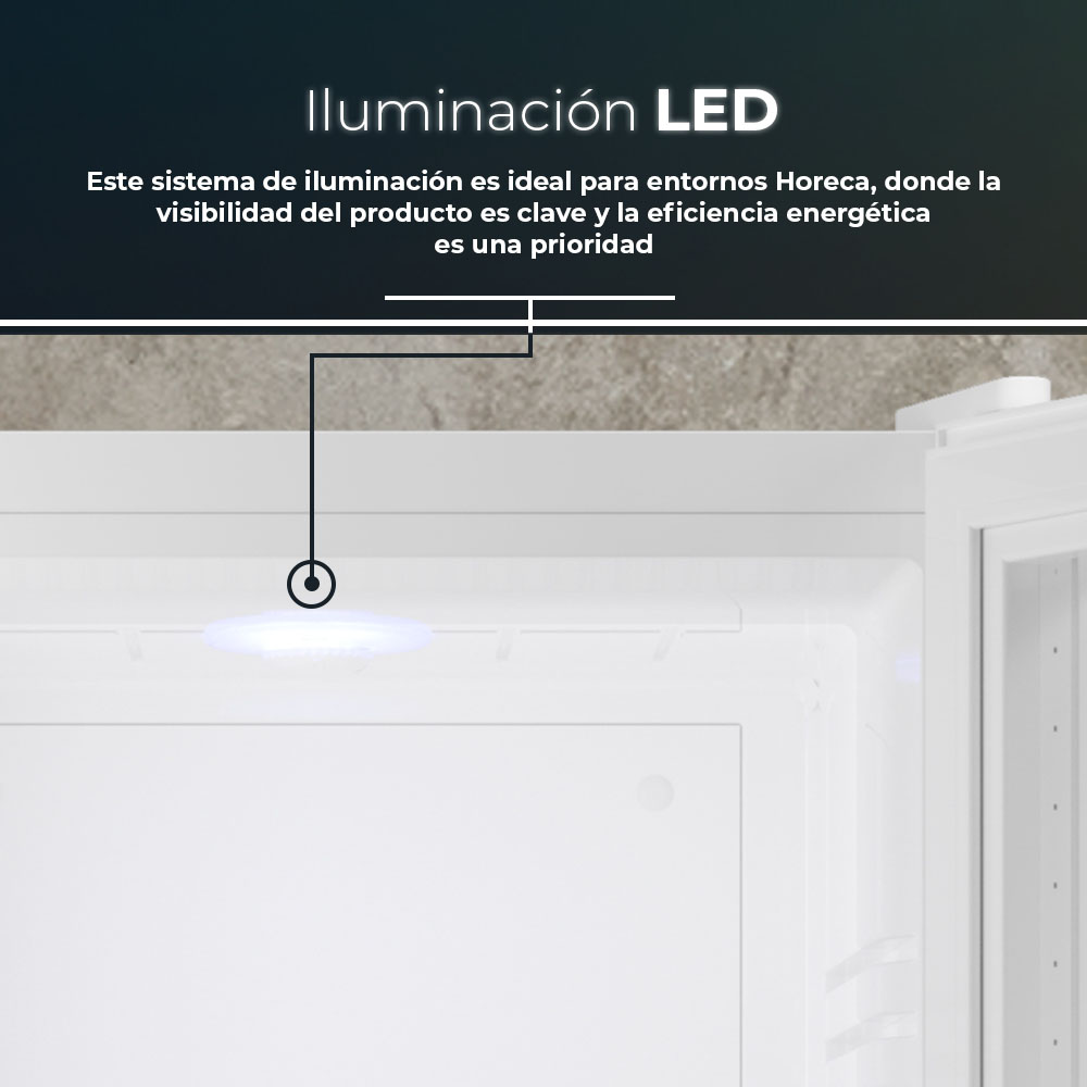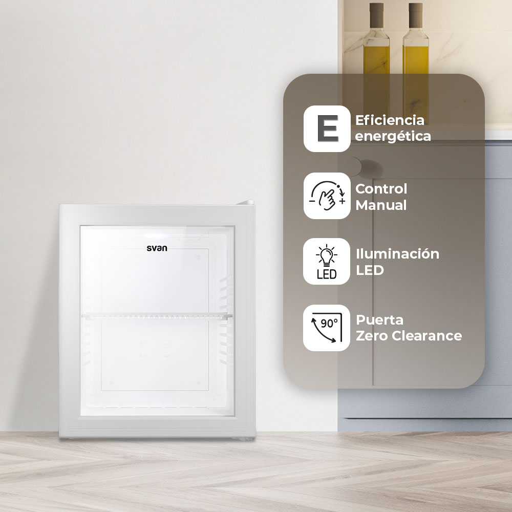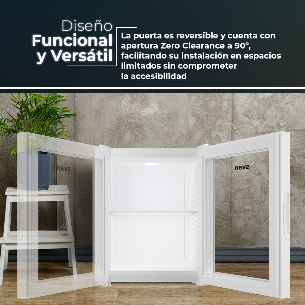 Esthétique blanche avec 1 porte vitrée réversible avec ouverture en rainure et système Zero Clearance 90º. Eclairage intérieur par LED. Système de contrôle manuel, dégivrage automatique et fonctions pour tirer le meilleur parti du réfrigérateur.