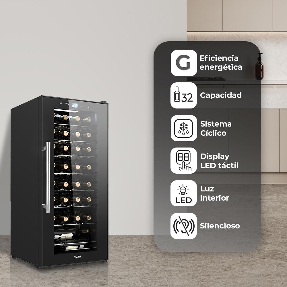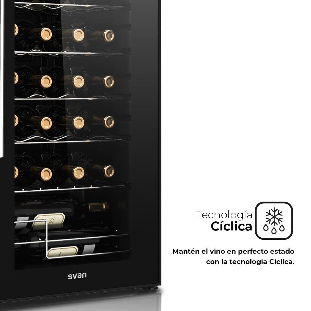 Refroidisseur à vin Svan Cyclic 92L 32Bot G 95cm 43cm 45cm Black Touch display Single Zone 1Door