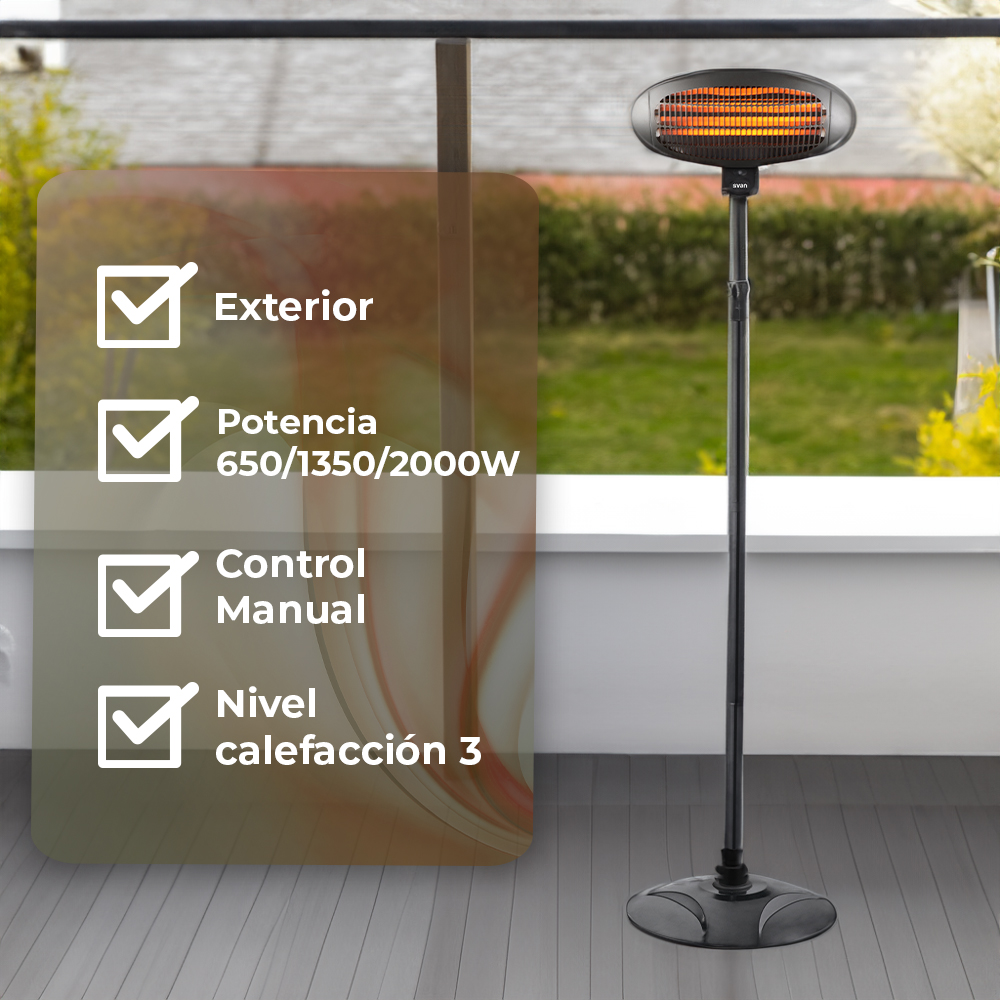 Svan Réchaud électrique halogène 3 niveaux 2000W Chaîne noire Utilisation en extérieur
