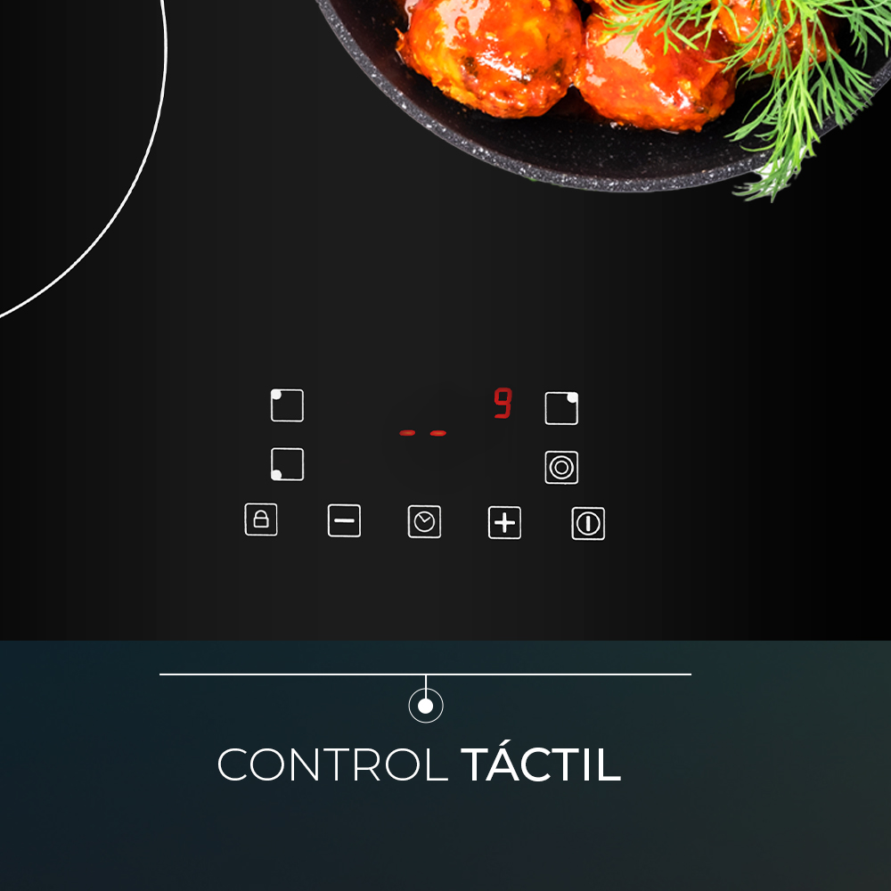 - En outre, il est doté d'un verrouillage du panneau, d'une minuterie jusqu'à 99 minutes et d'un indicateur de chaleur résiduelle sur les zones.