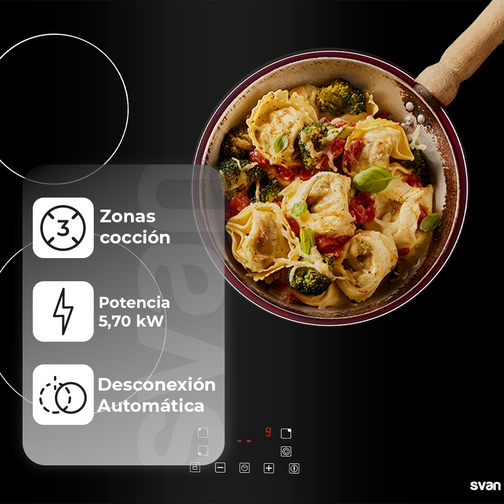 Table de cuisson vitrocéramique Svan 5700W 5,5cm 59cm 52cm Black Glass Touch 3Z Triple Corona