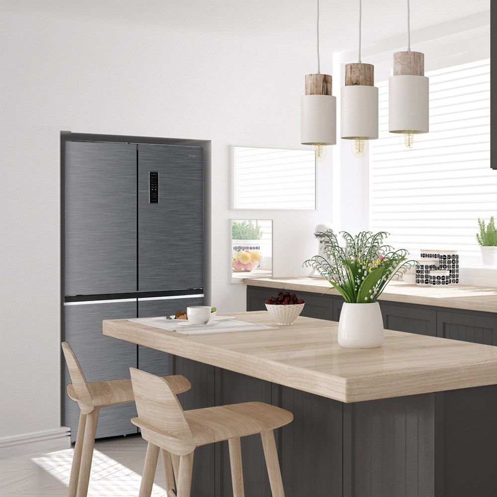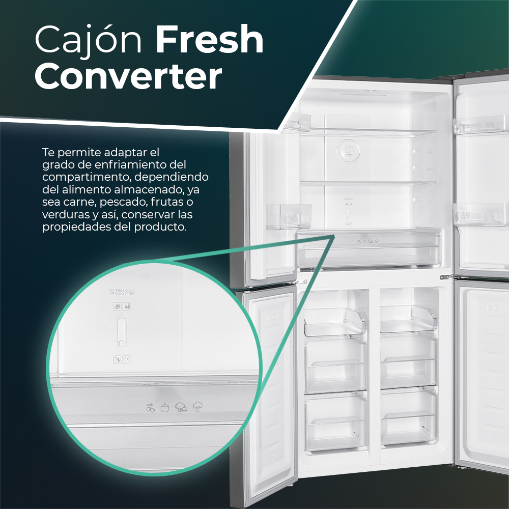 Estética inox con 4 puertas no reversibles de abertura tipo uñero. Iluminación interior LED. Sistema de control táctil con Display LED, descongelación automática y funciones con las que sacar el mayor rendimiento al frigorífico.