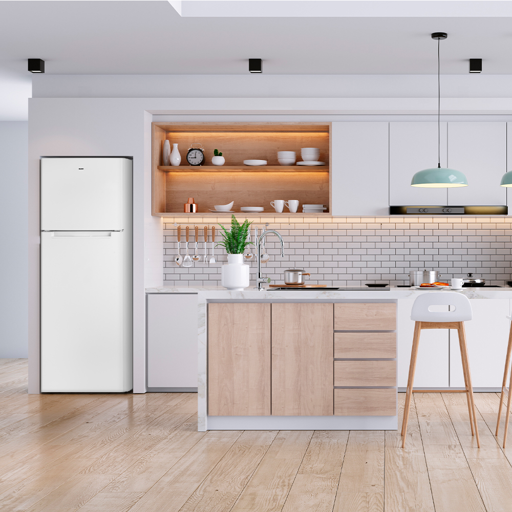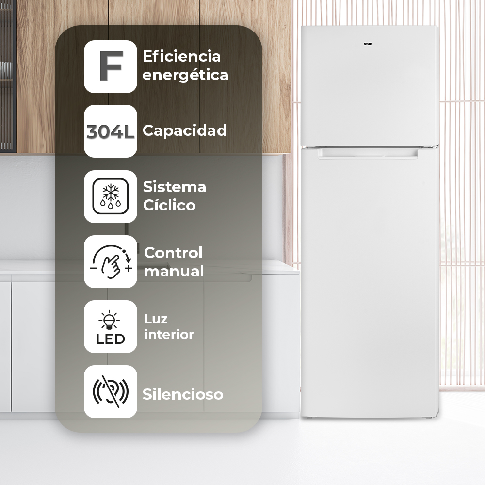 Capacidad total de 304 Litros, con congelador 4 estrellas y múltiples compartimentos para un óptimo almacenaje.