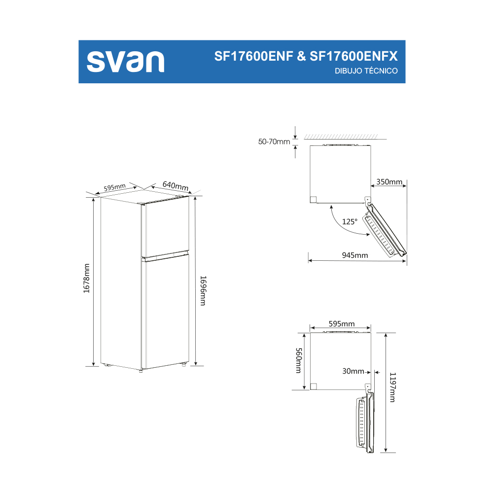 Frigorífico Svan No Frost E 169,6cm 59,5cm 64cm Inox Manual Inverter Cajón Chiller
