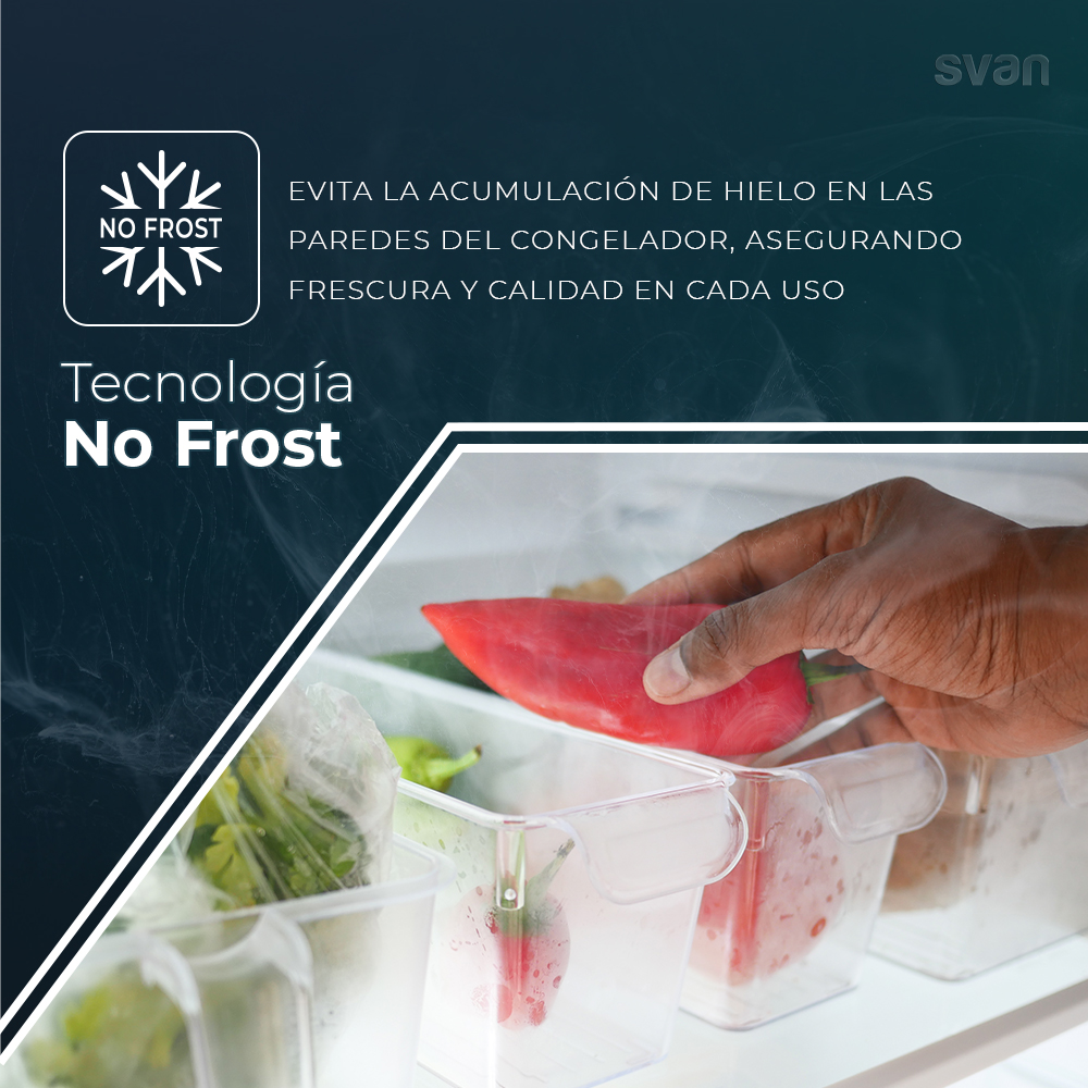 – La Tecnologia No Frost garantisce una conservazione ottimale degli alimenti e previene la formazione di ghiaccio e brina nel frigorifero. Insieme alla ventilazione Multi Air Flow, consentono una distribuzione uniforme in tutta la cavità e un raffreddamento più rapido.