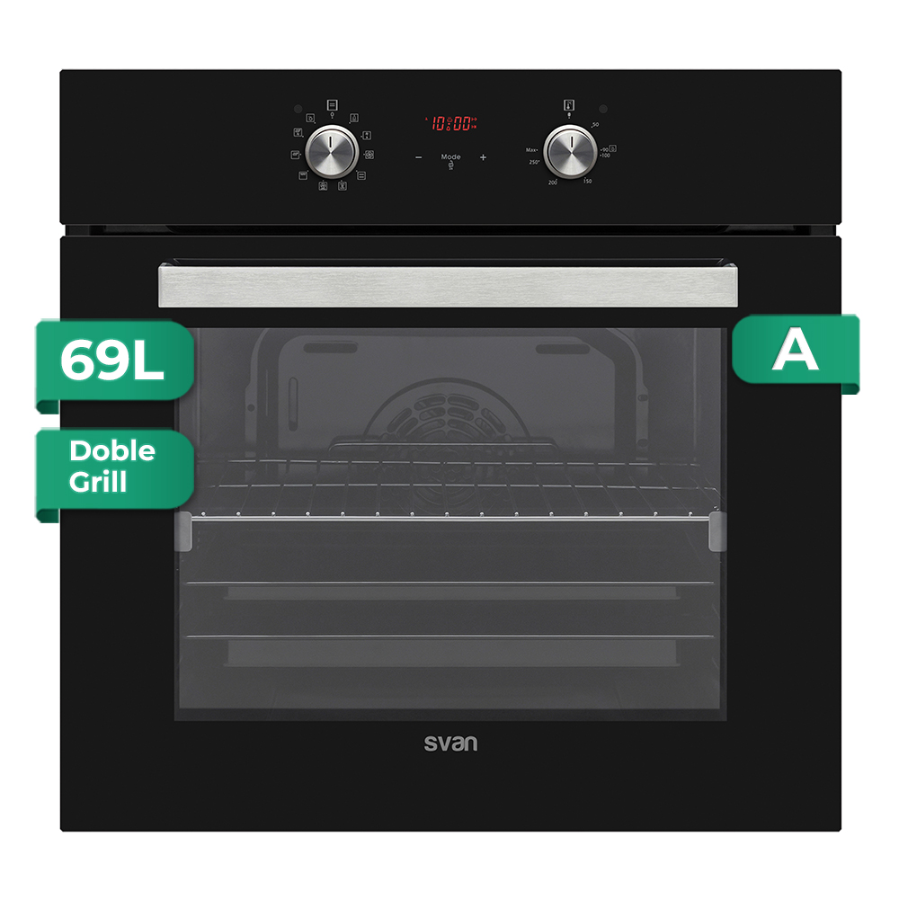 Forno multifunzione Svan 69L A 59,5cm 59,5cm 57,5cm 57,5cm Vetro nero Display touch 10P G.Telescopico