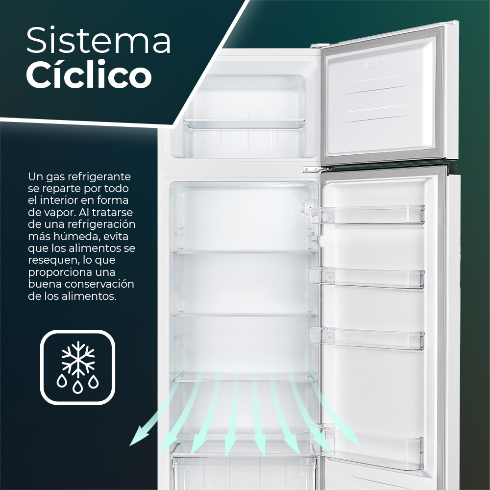 Estetica bianca con 2 porte reversibili con apertura a scanalatura. Illuminazione interna a LED. Sistema di controllo manuale, sbrinamento manuale e funzioni per sfruttare al meglio il frigorifero.