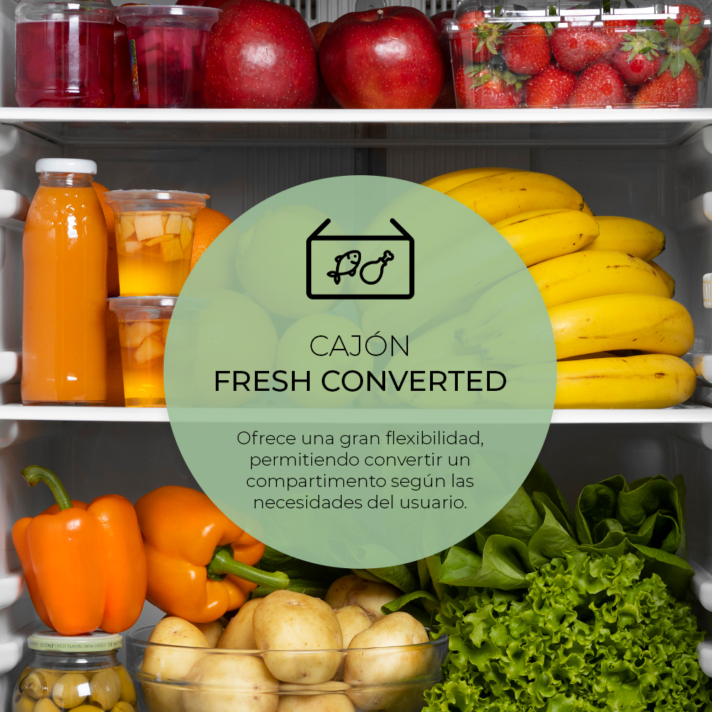 Capacidad total de 327 Litros, con congelador 4 estrellas y múltiples compartimentos para un óptimo almacenaje.