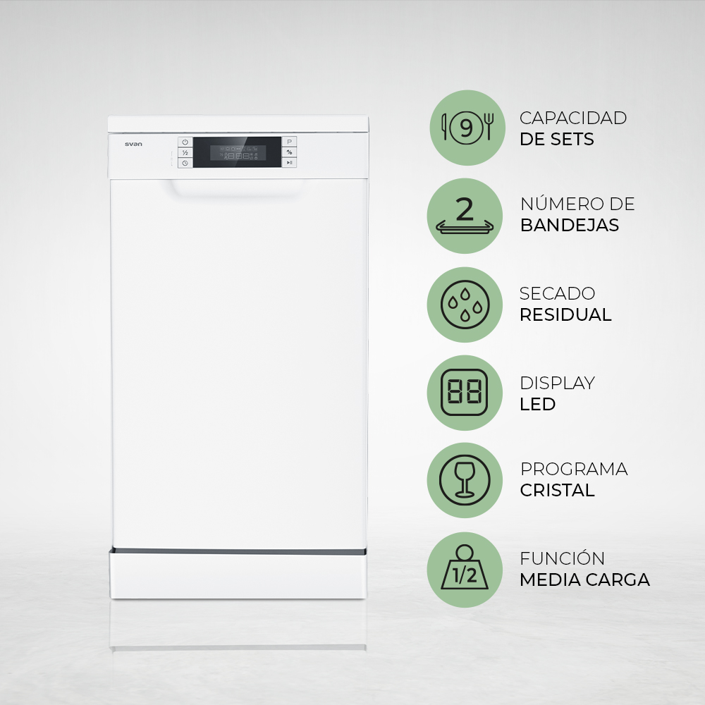 Lavastoviglie Svan 9sets E 84,5cm 44,8cm 61cm Bianco Display 2B 7P Residuo secco Mezzo Carico