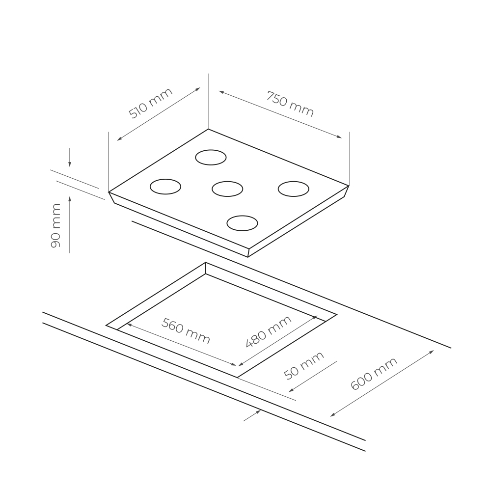 Dimensioni: 90 x 860 x 510 mm