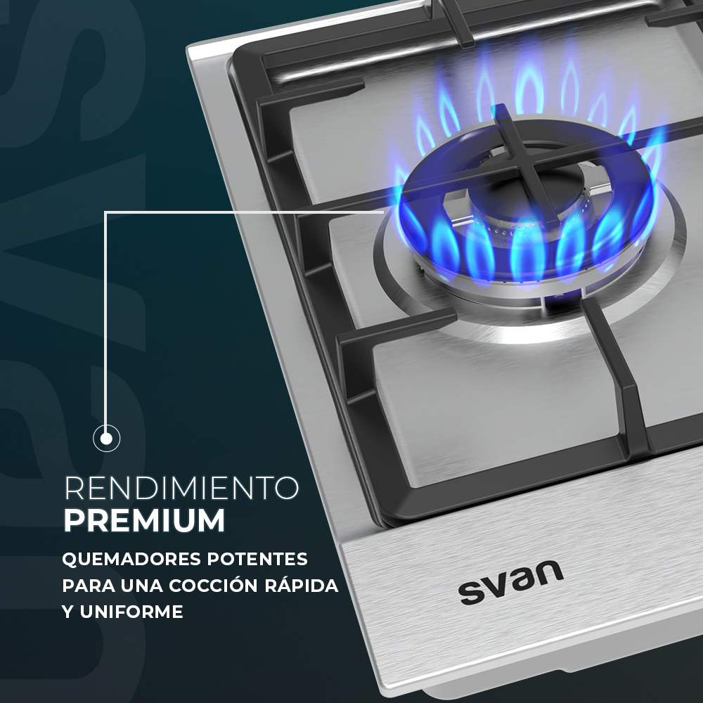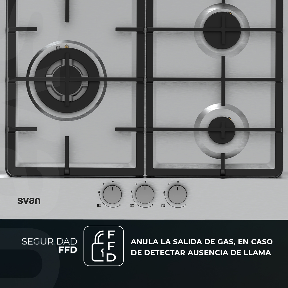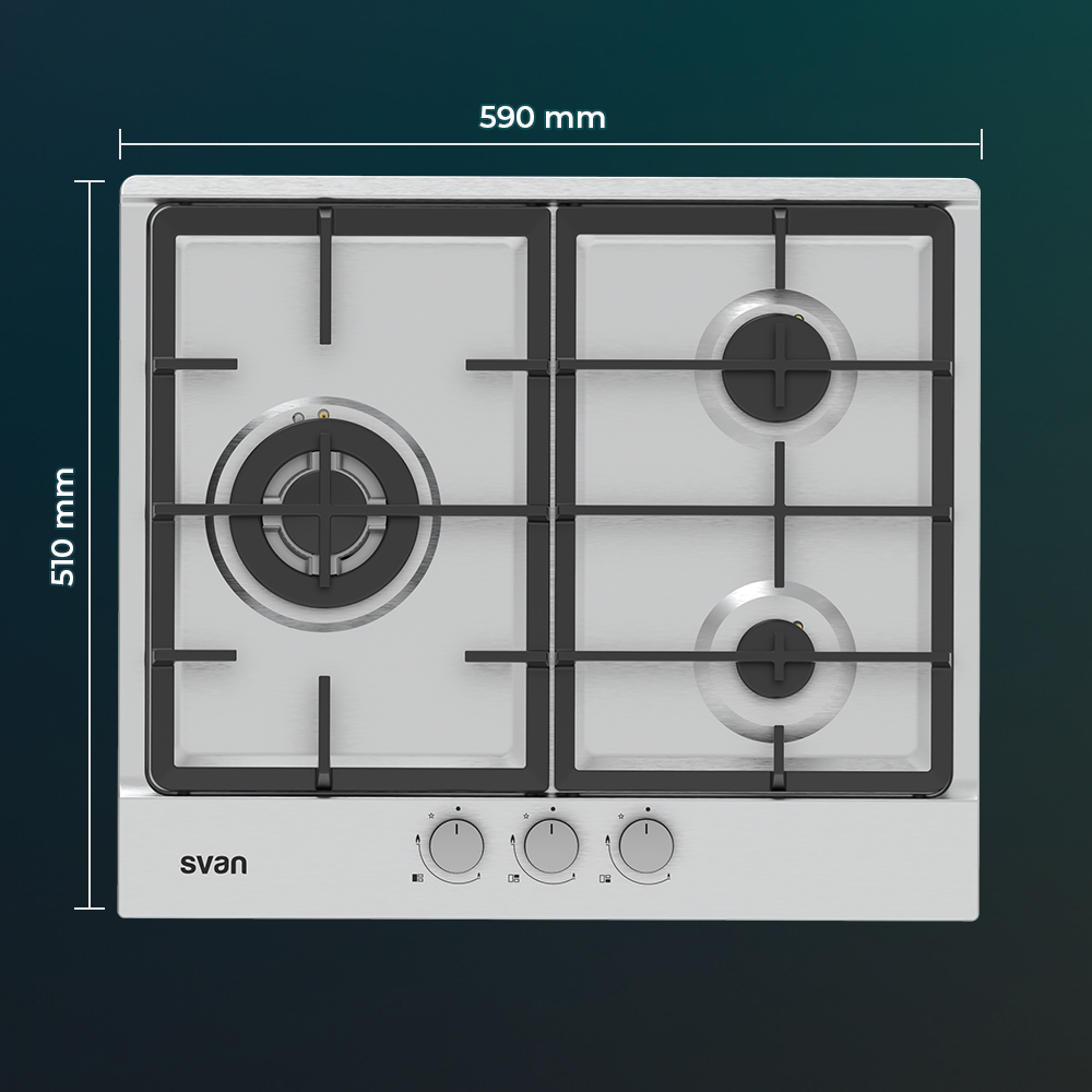 Piano di cottura a gas Svan SGW3600X da 60 cm di larghezza, modello SGW3600X.
