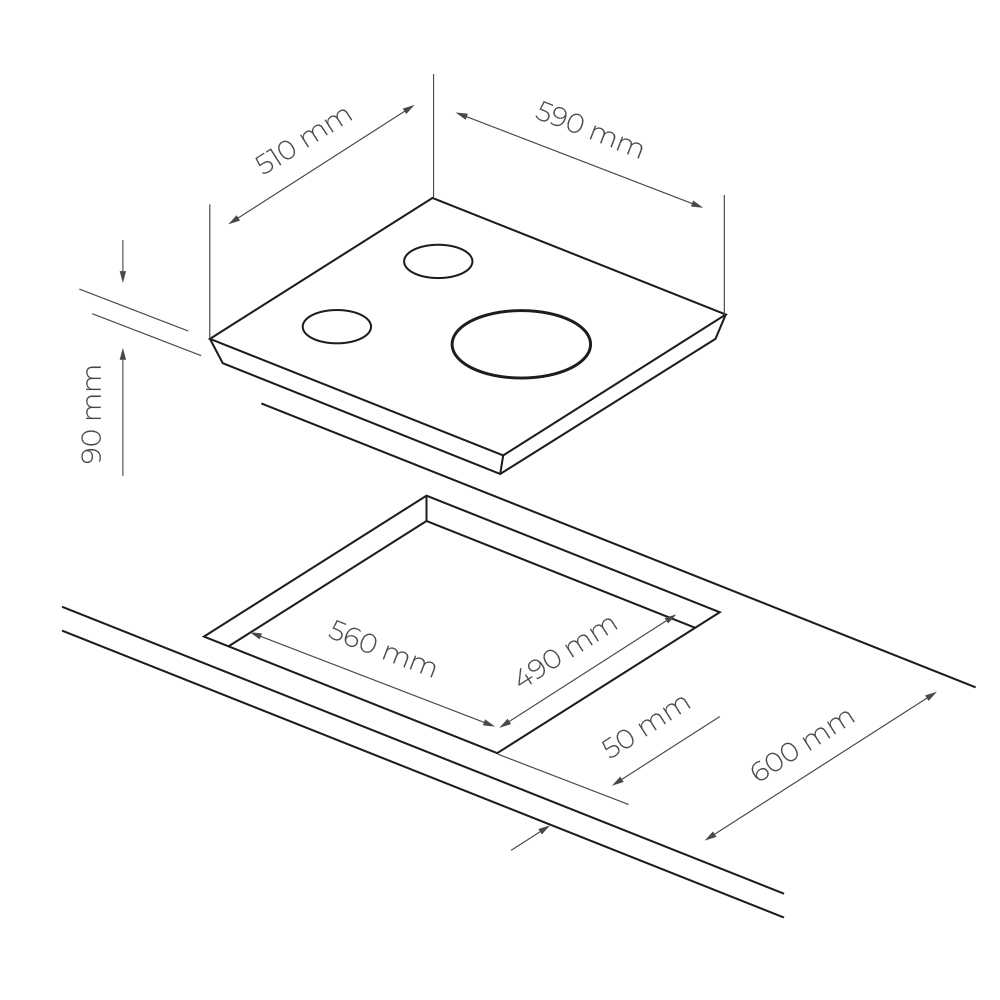 Dimensioni necessarie per la presa: 560 x 490 mm