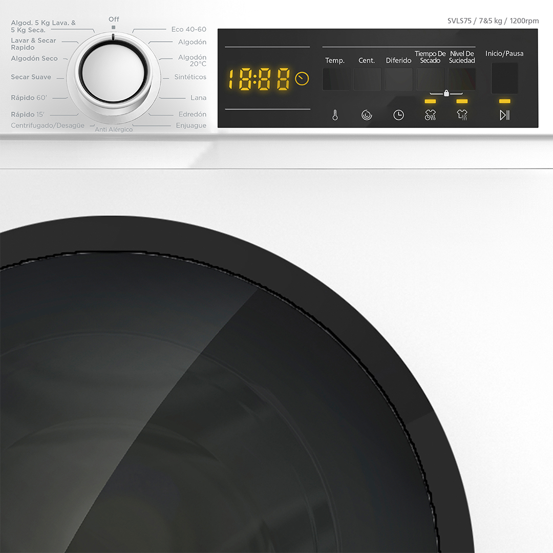 Lava-secadora Svan 7/5kg 1200rpm D/F 84,3cm 59,6cm 52,7cm Blanco Display Antialérgico Puerta XXL