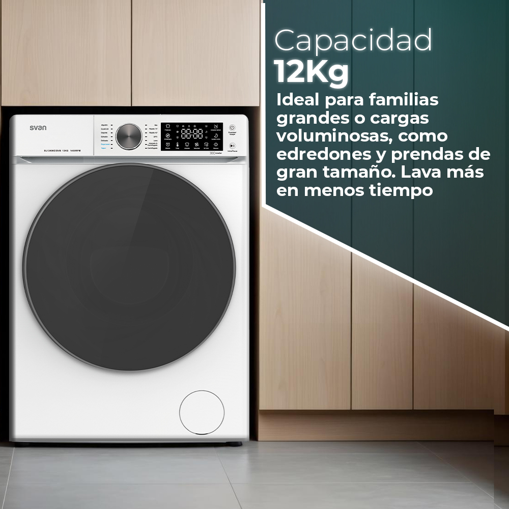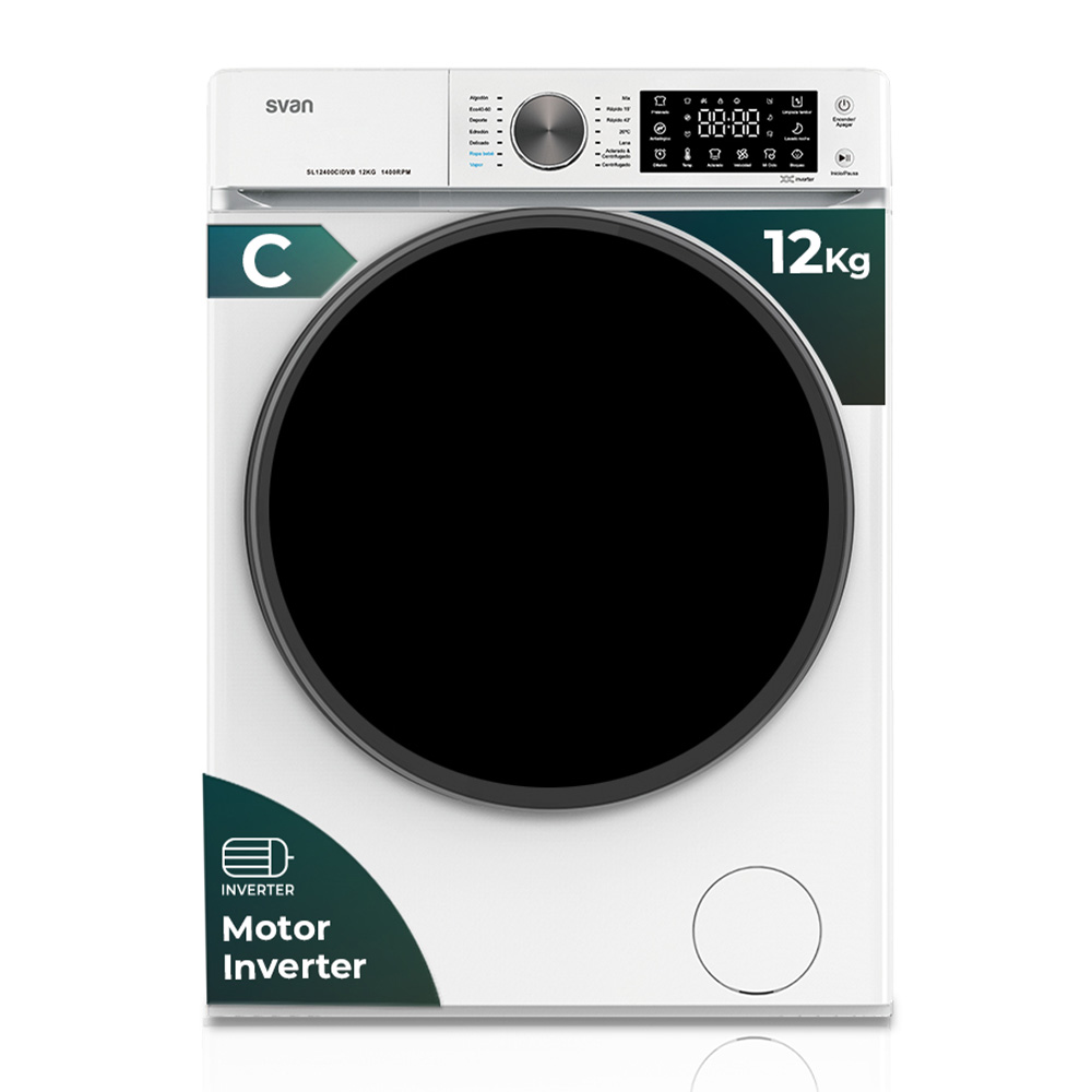 Lavadora carga frontal de Svan modelo SL12400CIDVB.