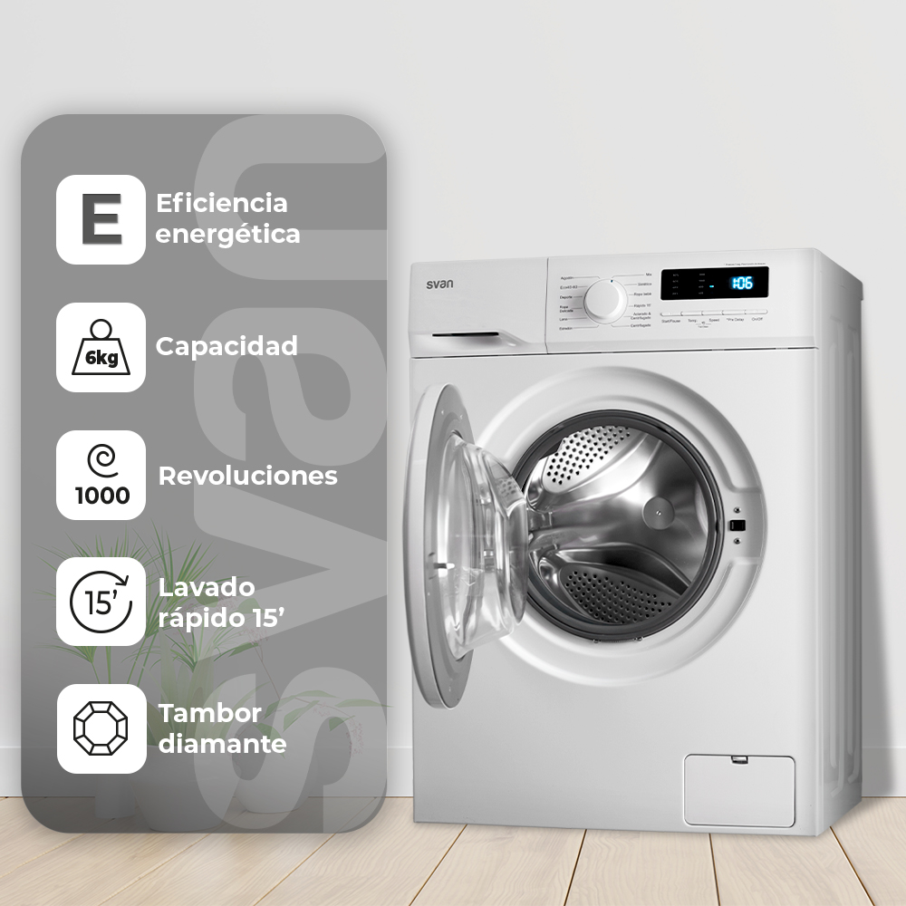 Lavadora Svan 6kg 1000rpm E 85cm 59,5cm 44cm Blanco Display T.Diamante
