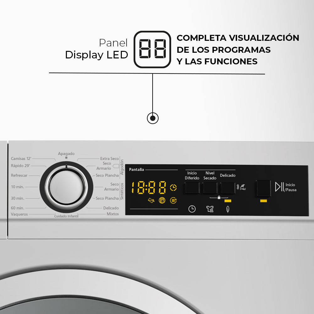 – La secadora permite el ajuste del nivel de secado del ciclo para proporcionar el mayor cuidado en función del tejido de la ropa.