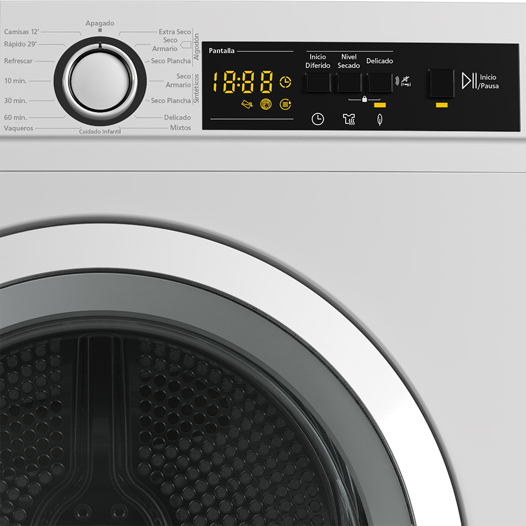 – Con la función Inicio Diferido será la secadora quien se adapte a ti. Podrás programar el ciclo para que se inicie cuando necesites y estén las prendas listas en el mejor momento.