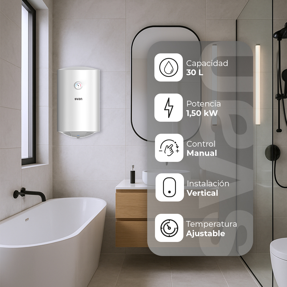 Termo eléctrico Svan Vertical 30L 1500W C 60cm 34cm 37,5cm Blanco Manual