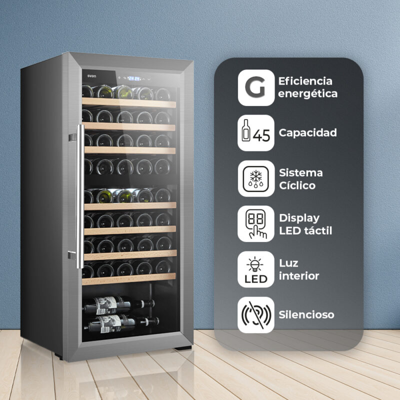 Vinoteca Svan Cíclico 127L 45Bot G 110,5cm 51cm 48,2cm Negro Display táctil Doble Zona 1Puerta